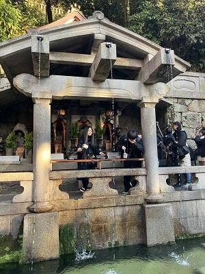 清水寺の本尊にお参りをして、舞台を見たり、音羽の滝で願掛けの