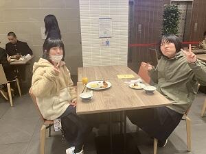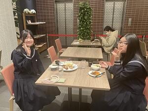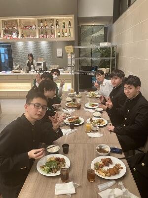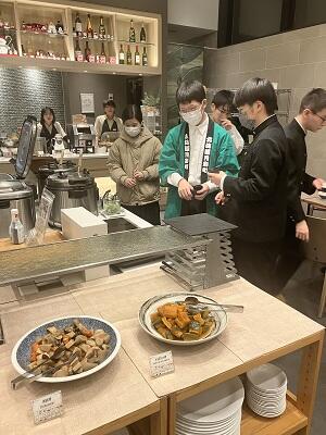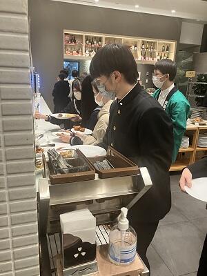 ほっと一息の夕食の様子、まだ、京都ホテルでもPR活動をしている生徒が・・・