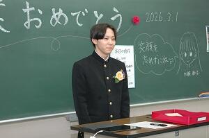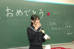 卒業証書授与式後の最後のホームルーム 投稿日時 : 03/01 学校管理者 3月1日(日) 卒業証書授与式後の最後のホームルームでは、3年間の奇蹟を 編集した映像を上映、その後、卒業生一人一人からこれからの抱負や感謝の 言葉をのべました。最後に担任の加藤先生お話の最後に卒業生から3年間の 感謝の意を込めたプレゼントを贈呈しました。 Tweet {{options.likeCount}} {{options.likeCount}}