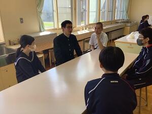 中高校流(2年生) 投稿日時 : 10/14 学校管理者 10月14日(月) 本校に月形中学校の2年生が来校し、本校の2年生と中高交流会(2学年)を 行いました。最初は、班に分かれて自己紹介をして交流を深めて、その後は「月形町の花を使 ったハーバリューム」の作成をみんなで協力しながら行いました。最後には今日作った作品の 感想をみんなの前で発表をして交流をさらに深めました。 Tweet {{options.likeCount}} {{options.likeCount}}